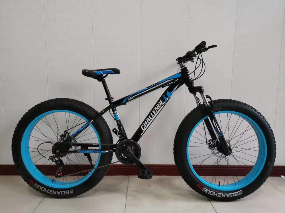 Challenge XTR FAT Bike - горный фэтбайк с колесами 26 дюймов. Модель имеет механические дисковые тормоза, удобные триггерные переключатели, амортизационную вилку.