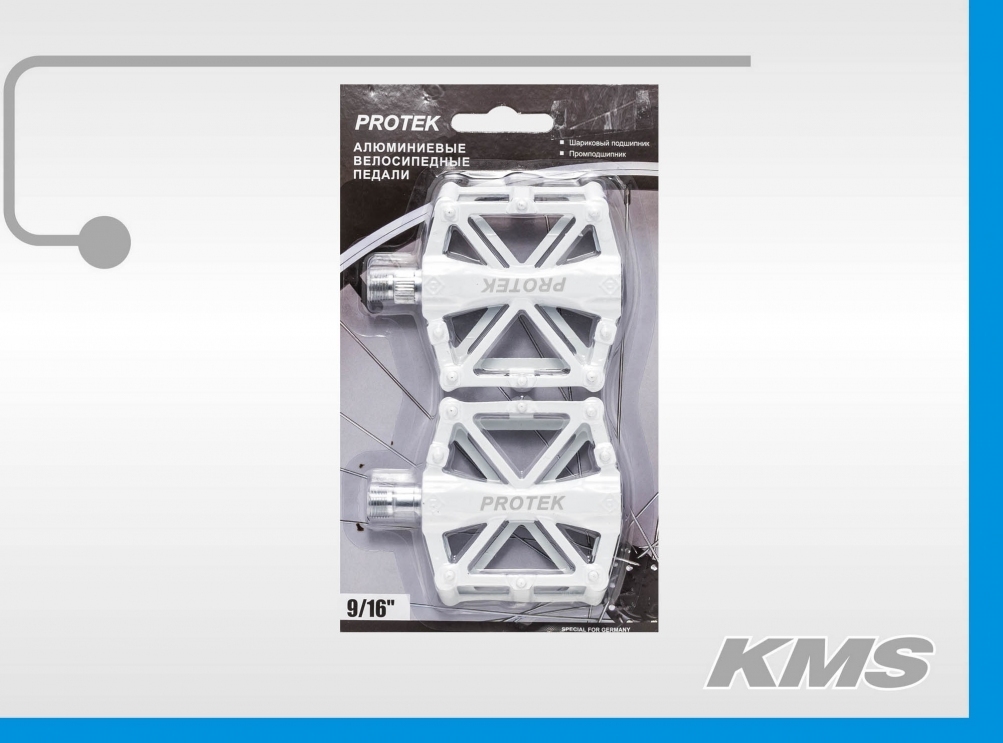 Педаль алюминиевая, "МТВ", с пром. подшипниками, резьба 9/16", белая, платформа "ПАУК", инд. упак., русский дизайн.