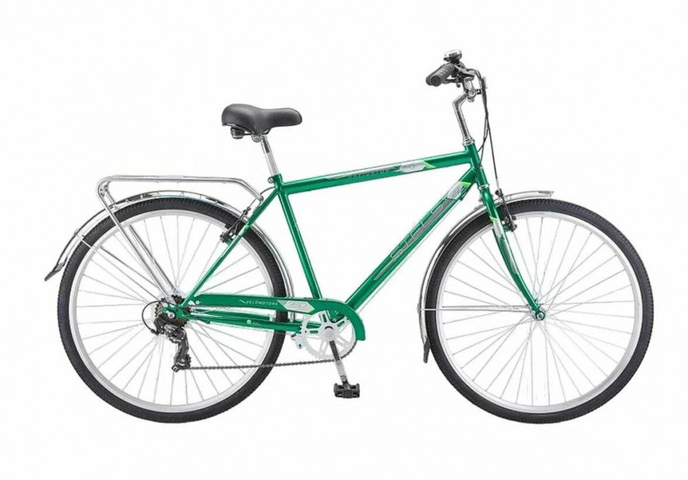 Дорожный велосипед Stels Navigator 350 Gent 28. Технические особенности: прочная стальная рама, жесткая вилка, двойной AL обод, надежные AL тормоза V-типа, покрышки CHAO YANG, седло CIONLLI, стальные крылья, багажник, звонок, корзина. Все детали велосипеда прошли тщательную проверку на безопасность и полностью отвечают европейским стандартам качества. Подходит для прогулочной езды по шоссе и ровным проселочным дорогам. Диаметр колес - 28 дюймов. Вес - 18,24 кг.